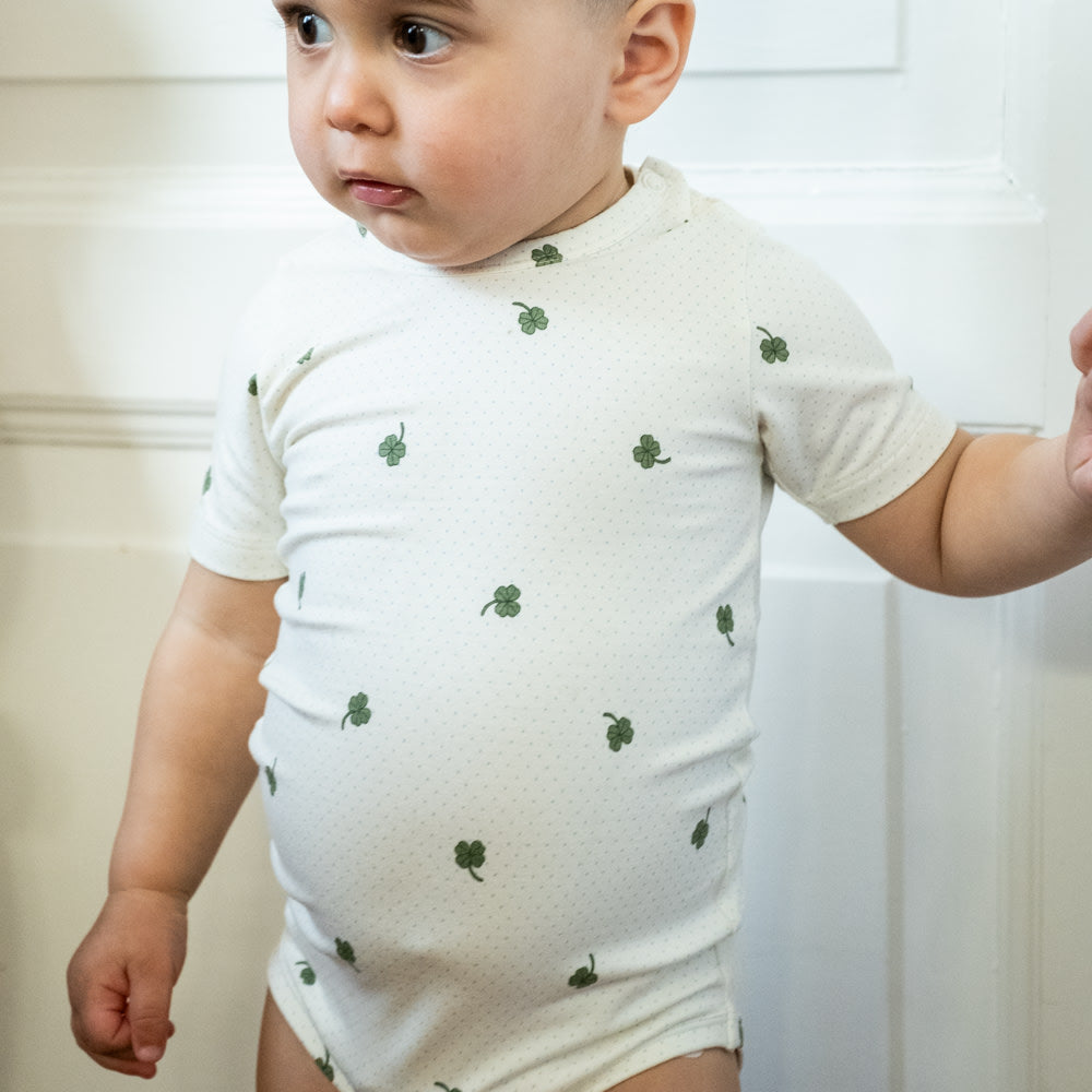 That's Mine Ellis SS bodystocking - Specks of luck - 48% Organic cotton / 47% Modal / 5% Elastane Buy Bodystockings||Undertøj||personale||Basics here.