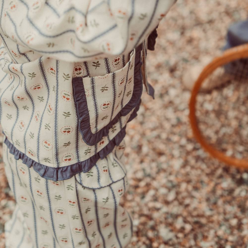 Fleur Shirt with collar and pocket. Small flounces at edge. Elastic at sleeve hem. Small heart buttons at front.