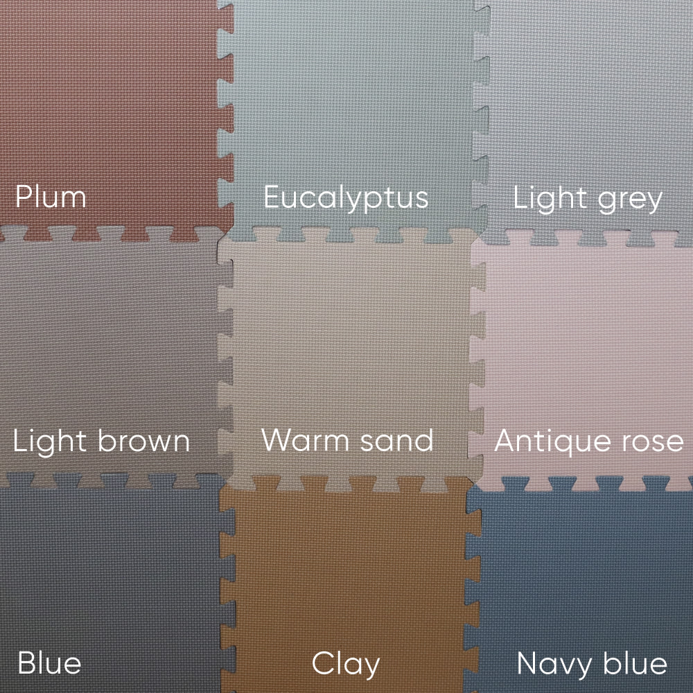 Please be aware when buying another foam play mat: When laying on the floor the sun can bleach the foam play mat. Therefore you can experience that the mats do not match in color, when buying a new on to expand the first mat.